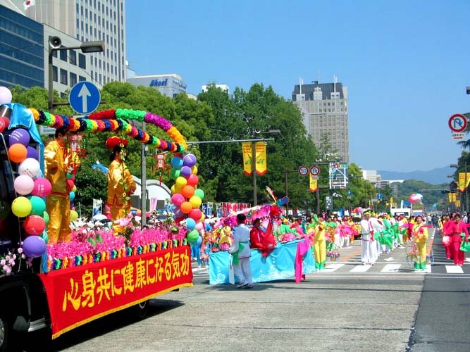 为了在本次活动展示大法的殊胜美好的同时,达到进一步讲清真相、救度世人的目的,我们事先大面积地发了真相报纸,并在巡游过后在闹市区为营救金子容子举行了征签活动。已了解真相的市民们纷纷在签名布上写下了为金子容子早日获得自由的美好祝愿,征签活动达到了理想的效果。