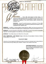 并邀请我们的全体市民与我一道赞扬法轮功学员通过在佛罗里达中部地区提供免费修炼课程,促进社会的努力。