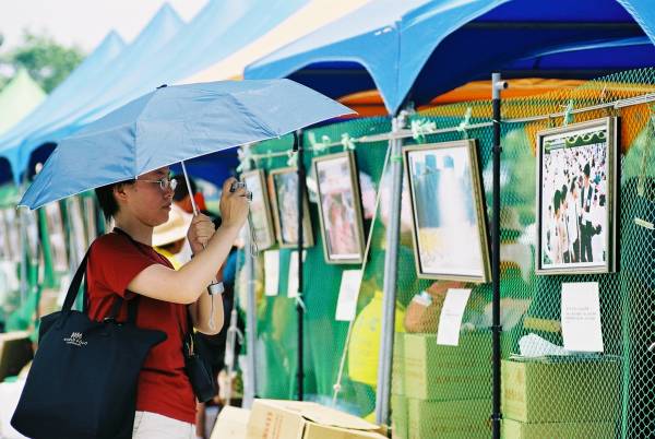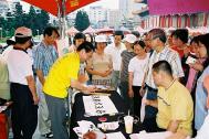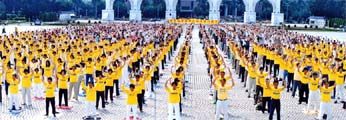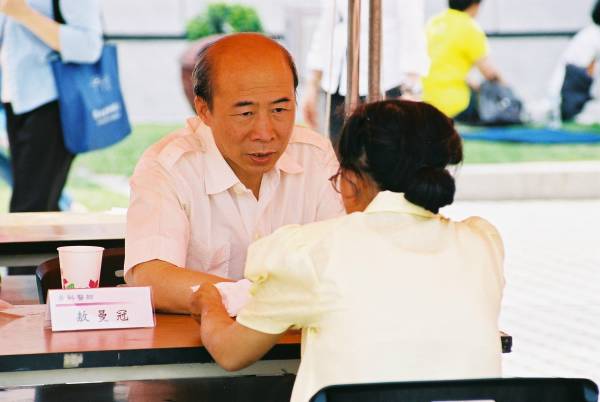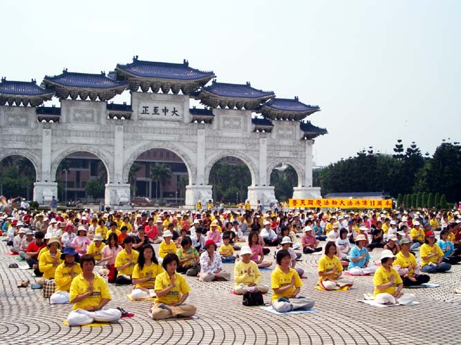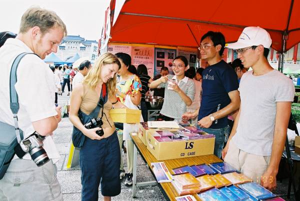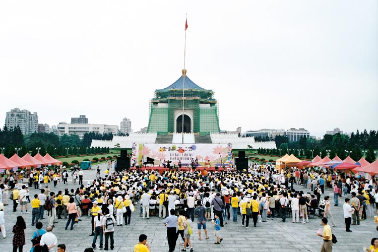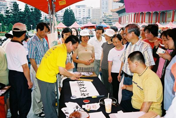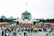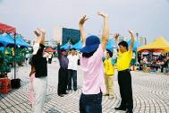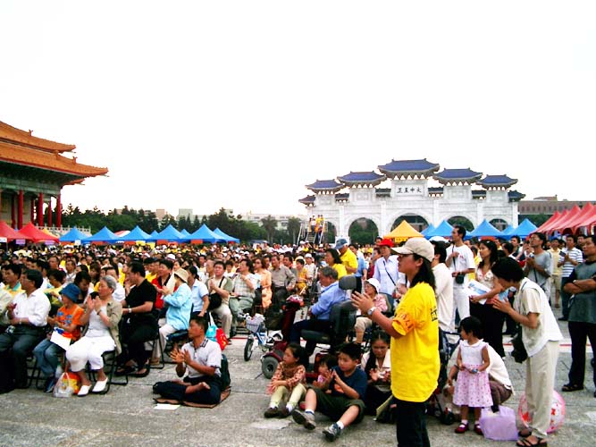 三个多小时的车程来到中正纪念堂广场后,之前的疑虑便一扫而空。广场上熙熙攘攘满是来往的人群,原本朋友电话中告知已经连日阴霾的台北市天气,也放了个大晴天,广场上的台北市民似乎也感染了大法弟子的活力与大法日喜庆的气氛,放下了行色匆匆的神情,纷纷驻足、观赏功法表演活动,或排队等候由中西医师学员提供的免费健康咨询服务,或悠闲地逛着园游会各式各样的摊位,或聚精会神细心观看一幅幅真相纪录图片,更有外国女孩在看完集体功法表演之后,向我们询问是否有英语人士可参加的炼功点。