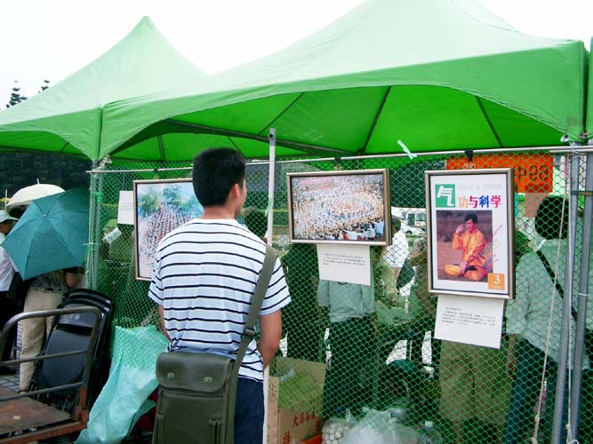 | 游客细心观赏正法之路系列图片 | 游客细心观赏正法之路系列图片 | 往来游客对于炼功增强抵抗力感到极大兴趣 |