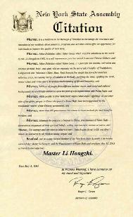 因此,作为纽约州众议院的当选议员,我在此向李洪志大师和法轮大法学员表示谢忱,并宣布2003年5月13日为“世界法轮大法日”。