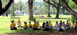 一路上,大法弟子们在市区多处做功法演示,散发真相传单和发正念。许多居民热情地欢迎大法弟子和他们举着的“法轮大法好”和“世界需要真善忍”横幅。游行活动在抵达中国大使馆前结束。