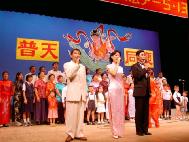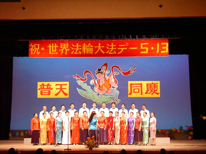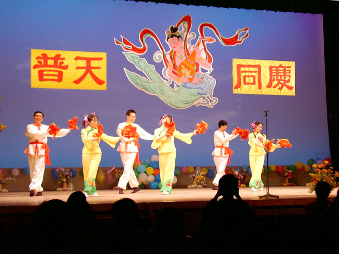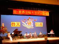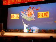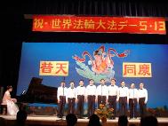 经常是台上音乐声起,台下合着节奏鼓掌,特别是最后大合唱《法轮大法好》,台上唱完一遍,主持人热情邀请观众一起上台加入合唱队伍,又唱一遍,仍是欲罢不能,再唱一遍,台上台下全场同唱,气氛热烈、融洽,人同此心。