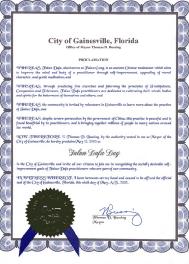 佛罗里达州甘士维尔市宣布“法轮大法日”