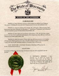 因此,现在,我,吉姆.多利(Jim Doylr),威斯康星州州长,特此表彰: