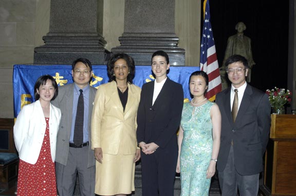 若特格大学周世雨教授介绍了法轮大法自92年传出后,因起独特的健身效果以及教人向善的原则,在短短的12年利就洪传50多个国家,上亿人修炼,但因为原国家主席江××害怕自己的权力受到威胁,于3年前开始了对修炼“真善忍”的善良人民的残酷迫害。他表示非常感谢三年来费城市长、市议员及各级政府对法轮功的支持。