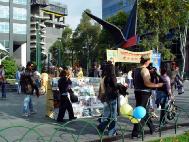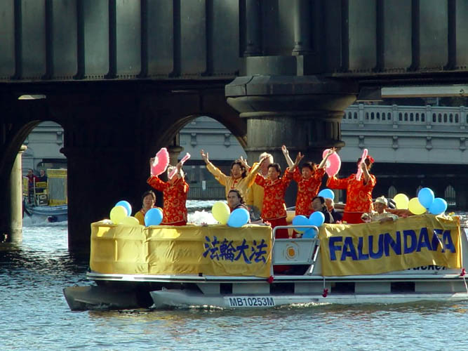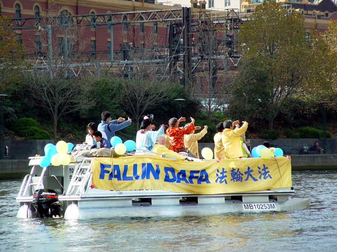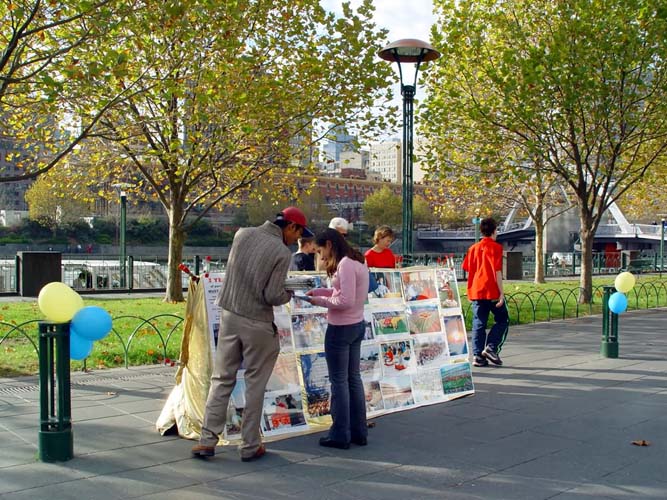 下午,法轮功学员们在雅若河岸举行了新闻发布会。澳洲民族电视台31号台、大纪元时报、新唐人电视台等媒体到场采访。