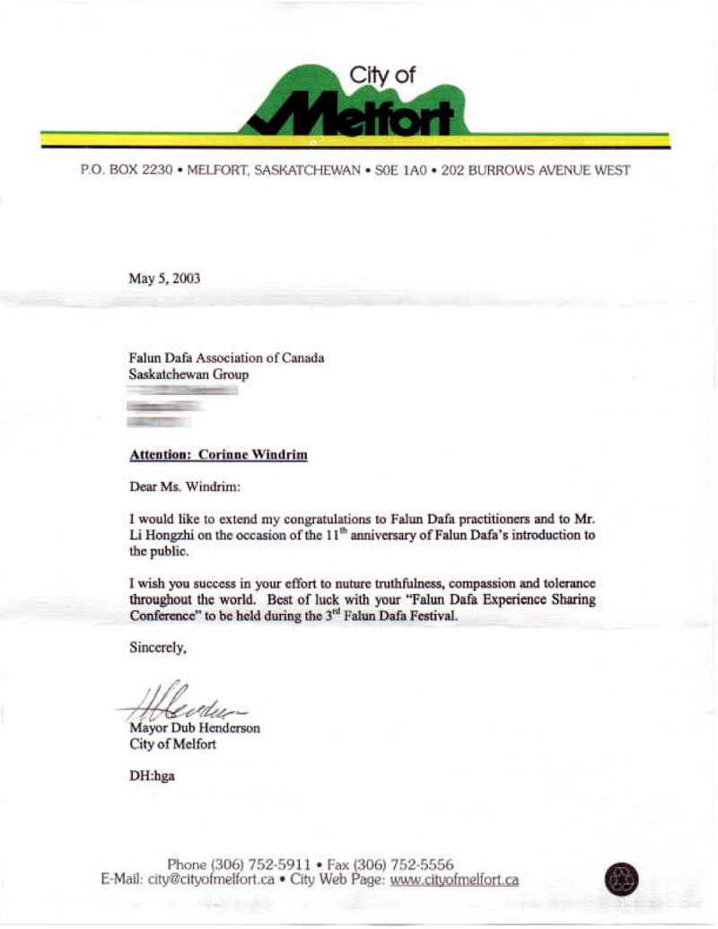 我希望你们在全世界推广真善忍的努力成功。我向你们在第三届法轮大法节期间将举办的法轮大法心得交流会致以最美好的祝愿。