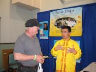 讲座之后,一对从肯塔基州来的夫妇来到我们的展台,那位男士告诉大法弟子说,他患有严重的全身性关节炎,不能做剧烈运动。今天尝试了法轮大法轻柔简单动作后,感到全身发热,很是舒畅,很想进一步学习。由于他来自外州,大法弟子就将法轮大法的网址告诉他,让他和当地的大法弟子联系。他们的一个同伴意犹未尽,坚持让大法弟子将所有的功法全部展示给他看,并将大法弟子炼功的场面拍摄下来留念。