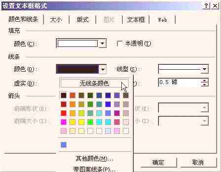 在设置文本框格式的颜色和线条一项中设置线条为有色,粗细选0.5磅,见图3。