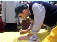 这次市场日的主题是“儿童--我们国家的脉搏”。很多孩子也跟随他们的父母来参加活动。一名四岁的小弟子打坐炼功,她宁静纯真的神态吸引了许多人驻足观看。