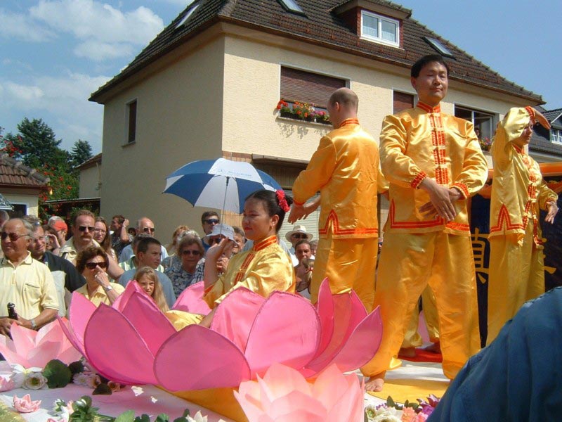 德国古城千年庆典游行中的法轮功队伍(图)