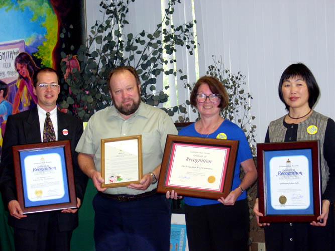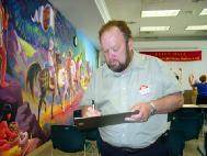 【明慧网2003年6月2日】2003年6月1日,加州圣地亚哥县艾尔克航市(The City of El Cajon)市长马克.刘易斯(Mark Lewis)与当地市民和法轮功学员一道,云集艾尔克航市图书馆会议大厅,共同庆祝首届“东圣地亚哥县法轮大法周”。刘易斯市长在法轮功学员征集签名的表格上签字,声援被中国政府非法关押的美国公民李祥春。艾尔克航市是东圣地亚哥县的最大城市。