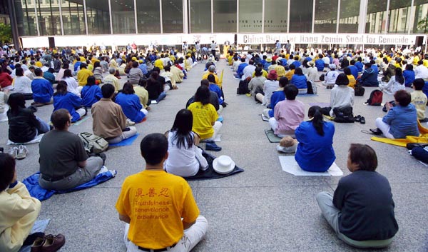 最近,我们到一个华人常去的街区展示法轮功功法并阐述在美国对江泽民诉讼案的真相。许多人想更多的了解功法并对江集团对和平的法轮功修炼者的镇压表示愤慨。许多年轻人学炼功动作,还表示了修炼功法的愿望。相当多的人在起诉江的签名表上签名,其中许多人来自中国大陆。还有一些年轻的大陆中国人表达了他们对在中国违反人权的状况的愤慨。