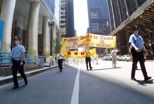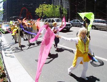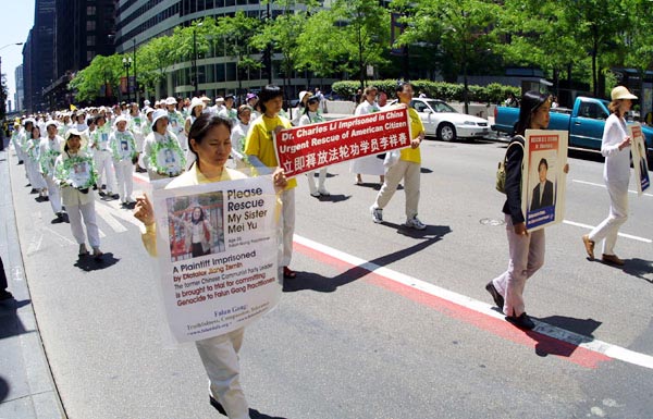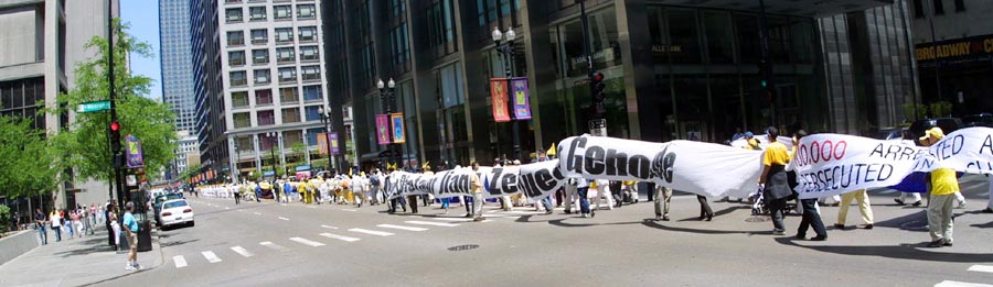 6月21日,法轮功学员在芝加哥市唐人街举行了盛大的集会游行,庆祝大法洪传11周年,并呼吁全世界人民加入在道义法庭和人心法庭对血债累累的江泽民大公审。游行队伍由腰鼓、唐装,秧歌,绸子舞队等开路,约有一千多名学员参加。很多人显然感受到了大法的美好和学员们的善良,都接过学员们散发的资料。一位老华侨看完游行后说,这么美丽并富有中国传统的游行,是他见到最好的。他还说应该在全美和全世界都这样游行表演,让所有人都知道你们有多好,都看到你们的声势和勇气。他期望将来在大陆也能看到这样的游行队伍的一天。