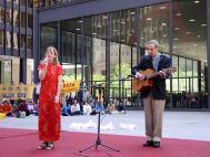 两台演出节目丰富多彩,参加演出的学员来自世界各地。从清新活泼的儿童歌舞,悠扬的中国民族乐器演奏,到西人学员演唱的中文大法歌曲和美不胜收的舞蹈,吸引许多行人纷纷驻足观看,博得全场观众的阵阵掌声。