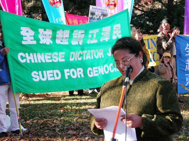 王女士的母亲因炼法轮功被江泽民集团关押在中国劳教所,迫害使原来幸福的家庭被无情地拆散,海外的亲人不能团聚。章翠英女士身为澳洲公民,但也同样遭受迫害,在中国被非法关押八个月。西方人士凯特(Kate) 曾于2001年11月与十多个国家的36名法轮功学员一起去了天安门广场。在那里因为说了一句“法轮大法好”就被江泽民集团无理关押,并因此而上了中国的黑名单,去其他国家旅行也受阻。一名小女孩也出庭指问“江泽民”,为什么把她父亲关押六个多月,至今不放人。纯真的小女孩质问“江泽民”她什么时候才能见到她父亲。