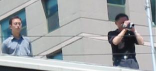 当一支由1500多名法轮功学员组成的游行队伍从芝加哥市中心著名的联邦广场出发来带到中国驻芝加哥使馆前时,两个中共驻芝加哥使馆官员爬上使馆屋顶对着游行队伍拍摄,企图为迫害海外的法轮功学员搜集资料。在海外,江氏流氓集团多次指使其驻外机构收集法轮功学员的个人资料,拍照、录像等,制造侵犯人权的“黑名单”,以阻止法轮功学员入境大陆、香港等地,并株连迫害他们在大陆的亲友。然而他们没想到的是,他们这一侵犯人权的行为也被记录下来,并可能成为全球公审江泽民行动中江集团迫害海外法轮功学员的新证据。