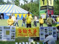 【明慧网2003年6月25日】6月21日星期六,阳光明媚,和风习习,在荷兰东部城市阿普杜美丽幽静的山林公园里举办了由荷兰移民局和难民协会组织的一年一度的大型多元文化节。大约2-3万居住在荷兰各地的外国移民、难民及荷兰当地居民参加了这次多元文化盛会。荷兰法轮功学员也应邀参加了功法演示。