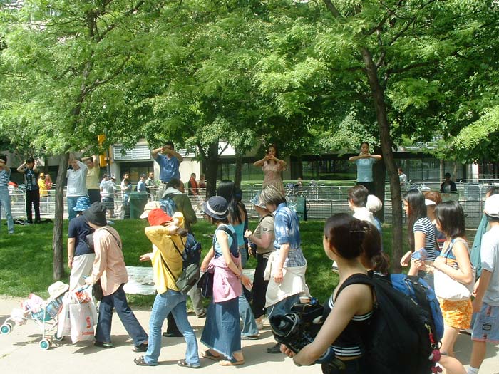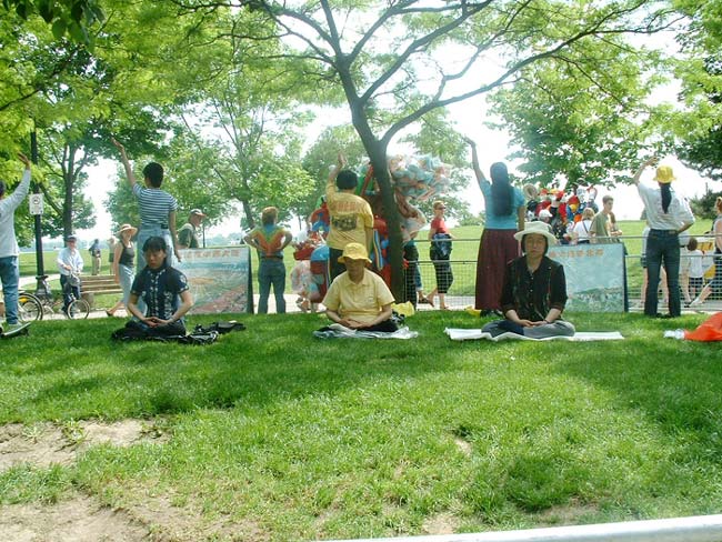 【明慧网2003年6月26日】6月22日,加拿大多伦多法轮功学员在龙舟节洪法