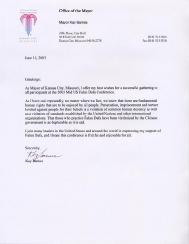 作为密苏里州堪萨斯城的市长,我向2003年美中法轮大法会议的参加者们致以诚挚祝愿,祝你们的集会圆满成功!
