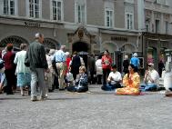会议期间,除各国首脑外,还来了很多媒体。大法学员准备的资料很快就发完了,一位总统夫人亲手从学员那里拿到了真相资料。一位摄影师告诉学员,当晚的地方电视台会有一个关于法轮功的报道。尽管刚开始的几个小时内下着小雨,市民们和很多游客还是特别感兴趣,学员和行人交谈得很好。当一位先生详细地听了关于法轮功和法轮功在中国受迫害的情况后,刚想走,又听到了另一位先生和一位学员的谈话,他主动上前,真诚地给那位先生讲述在中国发生的事情。