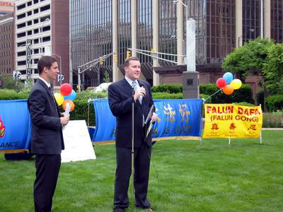 典礼中,副通讯主任周迪先生代表州长前来祝贺并表彰法轮大法所遵循的真善忍原则确能洗涤人心,并引导人类走向一个善良和谐的社会,他们高度肯定法轮功对社区的杰出贡献。