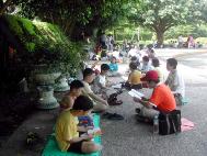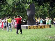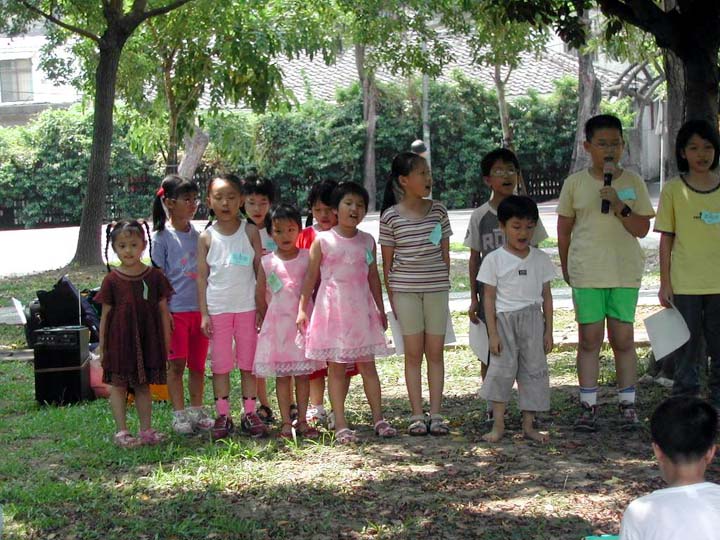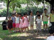炼完五套功法,小弟子们再次大声地念十分钟「洪吟」,然后就展开今天的参观活动,各小组由小组长各自带开进入士林官邸参观。据官邸工作人员告知,每逢星期六、星期日在官邸有导览员为民众提供免费导览,有几组小弟子刚进入官邸时,正好遇上导览员开始要进行导览,辅导员向他表示我们都是法轮功学员,趁着暑假特地带了一群中小学生也是法轮功学员来参观士林官邸,导览员表示非常欢迎。