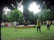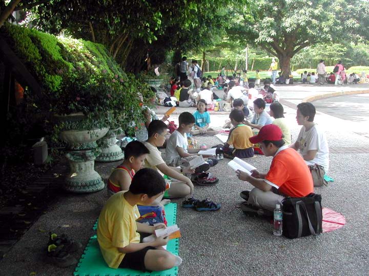 活动于九点整在士林官邸对面福林公园正式展开,首先安排第一阶段学法,各小组由小组长带领小弟子念「精進要旨」。其间小弟子与辅导员之间,或小弟子彼此之间,也穿插着生动的交流互动。