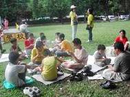 参观完官邸,大伙儿回到福林公园稍作休息,接下来就是小弟子们要打电话向大陆可贵的中国人讲清真相。辅导员事先准备打电话讲清真相的讲稿提供给小弟子参考,有打电话讲清真相经验或较高年级的小弟子就直接拨通电话讲真相,没有经验或年纪较小的小弟子则由辅导员拨通电话后,然后把电话交给小弟子看着讲稿向大陆可贵的中国人讲清真相。