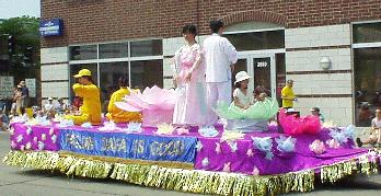 美丽、宁和、主旨突出,法轮大法花车获得2003年埃文斯顿市独立日游行“社区彩车类”第一名