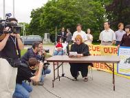 今年7月20日是中共全面迫害法轮功的四周年,多伦多法轮功学员于7月14日至7月19日举行为期一周的系列活动讲述法轮功被迫害真相,呼吁中共当局停止对法轮功的迫害。活动包括到市议员选区征集签名、汽车游行、在省议会前举行大型集会、在中领馆前的烛光悼念会等,提醒加拿大各界人士帮助维护正义和信仰自由。与此同时,相应的活动在渥太华、蒙特利尔相继展开。