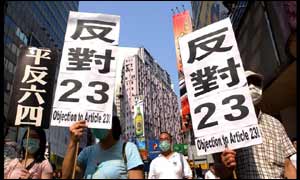 报导说,与此同时,一个由40多个民主、宗教和人权组织组成的团体“民间人权阵线”已经准备在星期二(7月1日)香港主权移交6周年之际举行大规模示威游行,抗议《香港国家安全(立法条文)条例草案》。