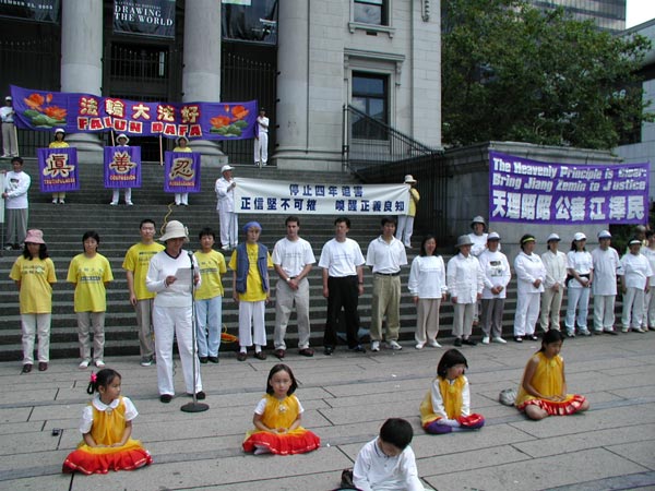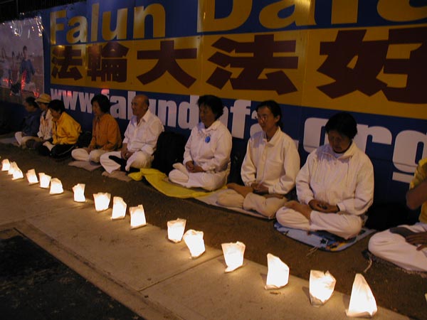 当天晚上7点,法轮功学员又赶到中国驻温哥华领事馆前,举行烛光守夜,纪念在过去四年中被江氏集团迫害致死的大陆法轮功学员。