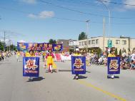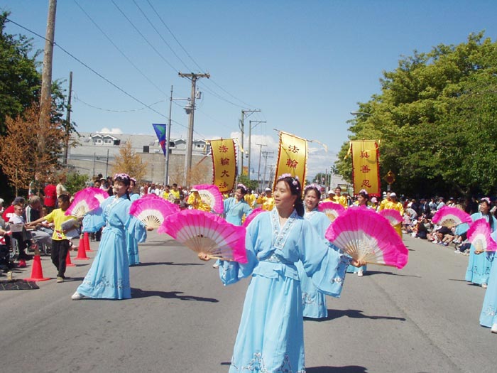 花篮舞、唐朝舞、扇子舞和功法表演在普度济世的伴乐下,游行队伍打着“法轮大法好”“真善忍”的旗子一路向观众走来,很多西人都被优美的舞蹈和美丽的功法吸引住了,有个西人禁不住说:“这么优美的功法和舞蹈竟在中国被取缔,也真叫人不可思议。”