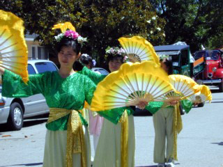 来自苗必达、圣荷西等城市的大法学员们来到了苗必达(Milpitas)市参加游行。当游行队伍经过主席台时,市长热情地向学员们挥手,并向观众介绍法轮大法。并看着我们的横幅上的字大声说出“修炼带来和平和健康。”