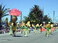 身穿“真、善、忍”字样法轮功服装的学员们个个面带微笑,友善地向两侧观众挥手致意。游行结束后,法轮功的队伍获得了步行并列一等奖。