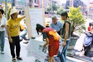 日本福井新闻6月30日报道,居住在新泻县的主妇金子容子女士因在中国北京抗议对“法轮功”的镇压,被北京市公安局关押。为使金子女士回到日本,东京的“营救支援会”15位成员29日在福井市国营铁路站前进行了散发传单活动。支援会在6月初,除了向本县提交了请援书,还向全国的都道府县提交了请援书。同时,他们还进行了相应的征集签名活动。