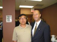两位议员的简短演说后给民众提问的机会。伊州弟子首先向两位联邦议员在过去对大法的支持表示感谢,然后对进一步营救李祥春医生及反对这场对法轮功学员信仰与人权的的事宜向议员提问。对于中国江氏集团对法轮功的迫害,这种践踏人类人权与信仰的行径,两位议员都表示了极大的愤慨并表示有责任维护人类人权与信仰的自由。对营救李祥春医生他们表示将进一步提供帮助。
