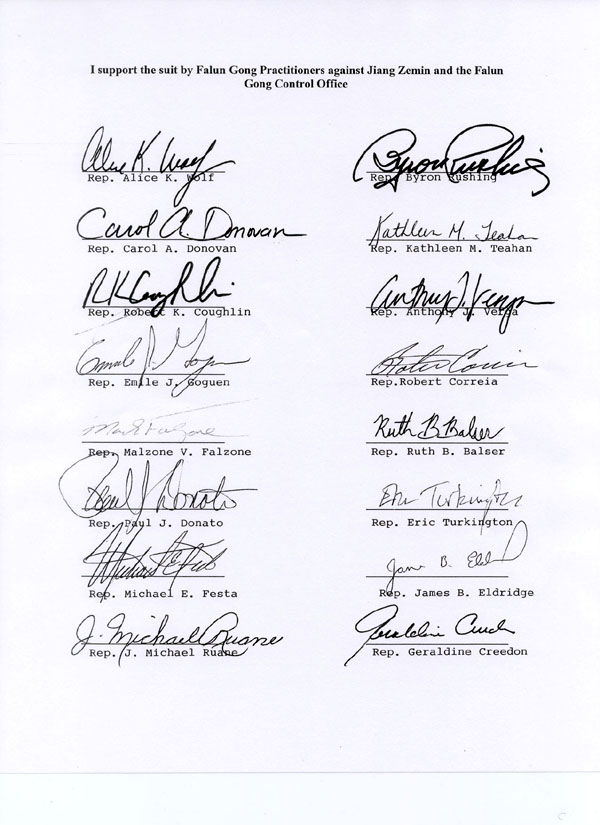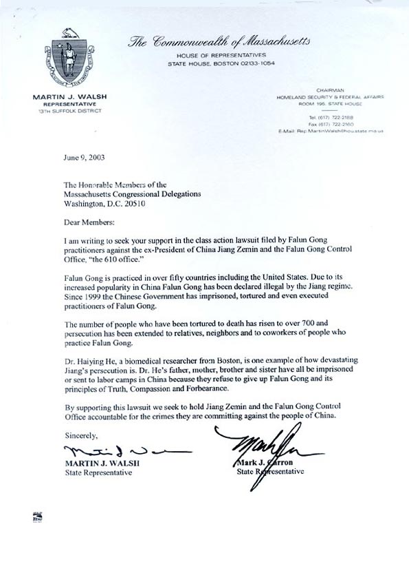 | 麻州议员的呼吁信 | 26名麻省州众议员和2名州参议员的签名 | |