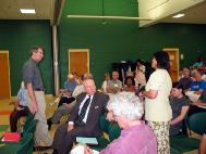 卢博士感谢Rob Pottery 议员对中国人权状况的关注,特别是他对国会188号决议案的支持,她并希望美国人民和国会议员继续支持法轮功学员反迫害的和平努力。她的发言赢得了会议期间的第一次全场鼓掌。之前当讨论到伊拉克战争等问题时,一些与会者因意见不一致,争论颇为激烈。但是当法轮功学员代表发言后,气氛变得融洽平和起来。