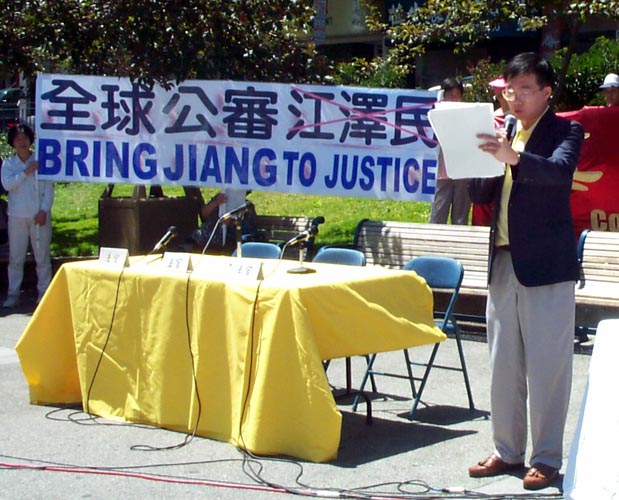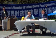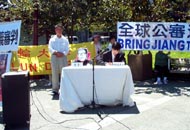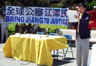 刚从中国大陆被营救来美的北京学员卞旭庄,代表中国大陆受迫害的法轮功学员出庭作证。他以自己的亲身经历,证明4.25大上访是合理合法的行使宪法赋予公民的基本权利。江氏集团的所谓“围攻”完全是捏造和违背事实的。追查迫害法轮功国际组织的代表黄宇正出庭作证,说明所谓的“自焚”事件完全是一场有预谋的骗局。黄说,如果把中央电视台的录像画面进行慢镜头分析就会发现很多疑点。美国公民李祥春的未婚妻符泳青向法庭提供了未婚夫在狱中被中国政府非法判刑,在狱中受到非人虐待的事实,证明了江氏集团不仅对中国的法轮功学员进行残酷的迫害,更是将这种迫害延伸到海外。