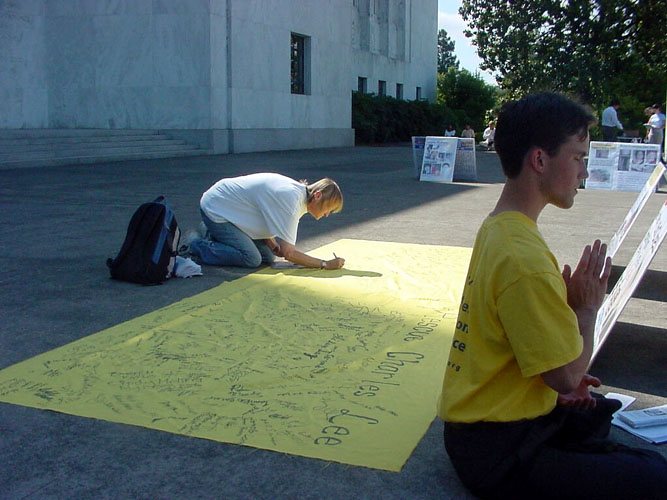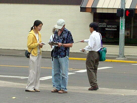 美国俄勒冈州时代报8月13日报道,法轮功“汽车营救之旅”经过科瓦利斯,在市政厅前集会,为营救查尔斯。李征集签名。李是美国公民,住在加州门罗帕克市,他被关押在中国有六个多月了。该活动由“查尔斯之友”,“全球营救受迫害法轮功学员小组”和“法轮功之友”共同发起。