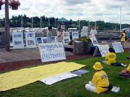 户外炼功点洪法效果好。最近我们在多伦多两条大街的街边绿地上建了一个炼功点。周一至周四早6时至8时,晚7时半至8时半,周六、日早8时半至10时半。洪法效果非常好,过往行人很多,经常会有人向我们询问,拿资料,现在陆续有新学员进来学功。而且还不断有路人在看到我们祥和的功法时,非常渴望地询问是否也有类似的炼功点在他们的居家附近,并索要有炼功点和联系人的传单。建议有条件的学员都能出来炼功,一个点不一定很多人,两三个人,拉个小横幅在自己家附近的绿地、公园就行。就象7.20之前的中国大陆,到处都能看见炼功点,人们很方便地就能找到我们的炼功点。
