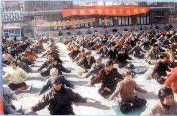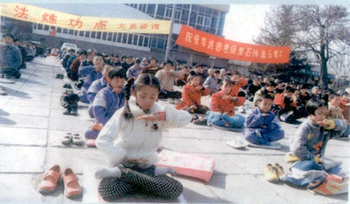 法轮大法修炼者在河北剧场炼功