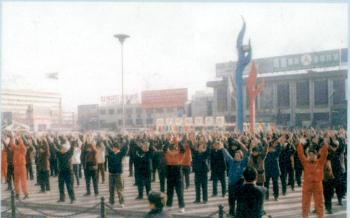 法轮大法修炼者在石家庄火车站广场炼功