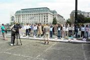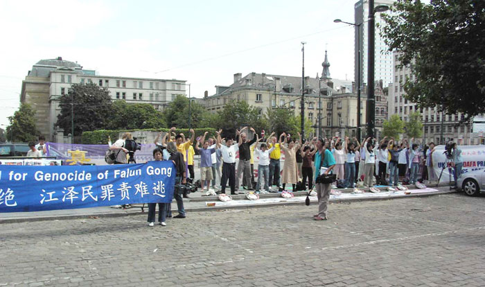 在新闻发布会的同时,来自澳大利亚、法国、瑞典、比利时、瑞士、德国、丹麦、英国及东欧的大法弟子在最高法院外举行了洪法、发正念的活动、支持审判江××等对法轮功的迫害的元凶首恶。