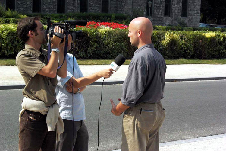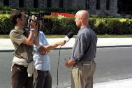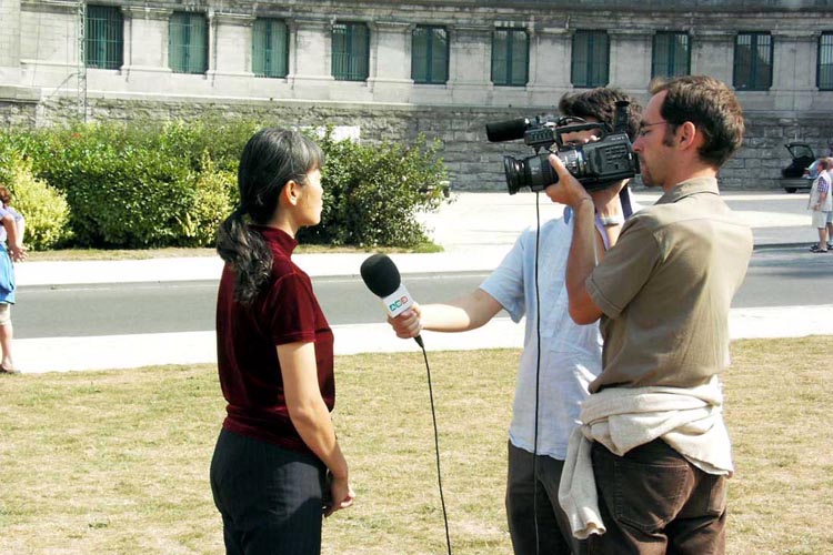 【明慧网2003年8月23日】继8月20日的新闻发布会后,比利时媒体继续表现出了对诉江案的强烈兴趣。8月21日在一家电视台的主动要求下,来自法国、瑞典、英国、德国、丹麦、澳大利亚及比利时本地的学员在布鲁塞尔的炼功点接受了采访。随后一位本地学员被邀请参加一个国家电视台的直播访谈节目。而另一家地区电视台则来到一位学员家中进行了采访,制作的节目非常正面报道了法轮大法及这桩诉江案。
