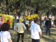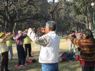 次日下午在公园炼功洪法,吸引了无数的民众看我们炼功及听我们讲真相。有一个小女孩一看到了我们就跟着炼。她只看了一会儿,没人教她,就闭上眼睛一个人在旁边炼起功来了。动作之标准,令我们很惊讶。