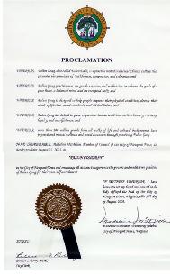 因此,我,纽波特纽斯市市议会议员玛德林.麦克米兰,特此褒奖2003年8月23日为: